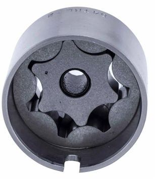 Automatic Reversing: In a non-reversing lobe or gear pump reversing the rotation of the shaft means the direction of flow changes. In the Ingersoll Rand TR pump the reversing mechanism ensures the direction of flow remains constant as the idler carrier revolves through 180 degrees as the direction of rotation changes. This feature is extremely important for gearbox and transmission applications where the shaft rotation can change frequently.